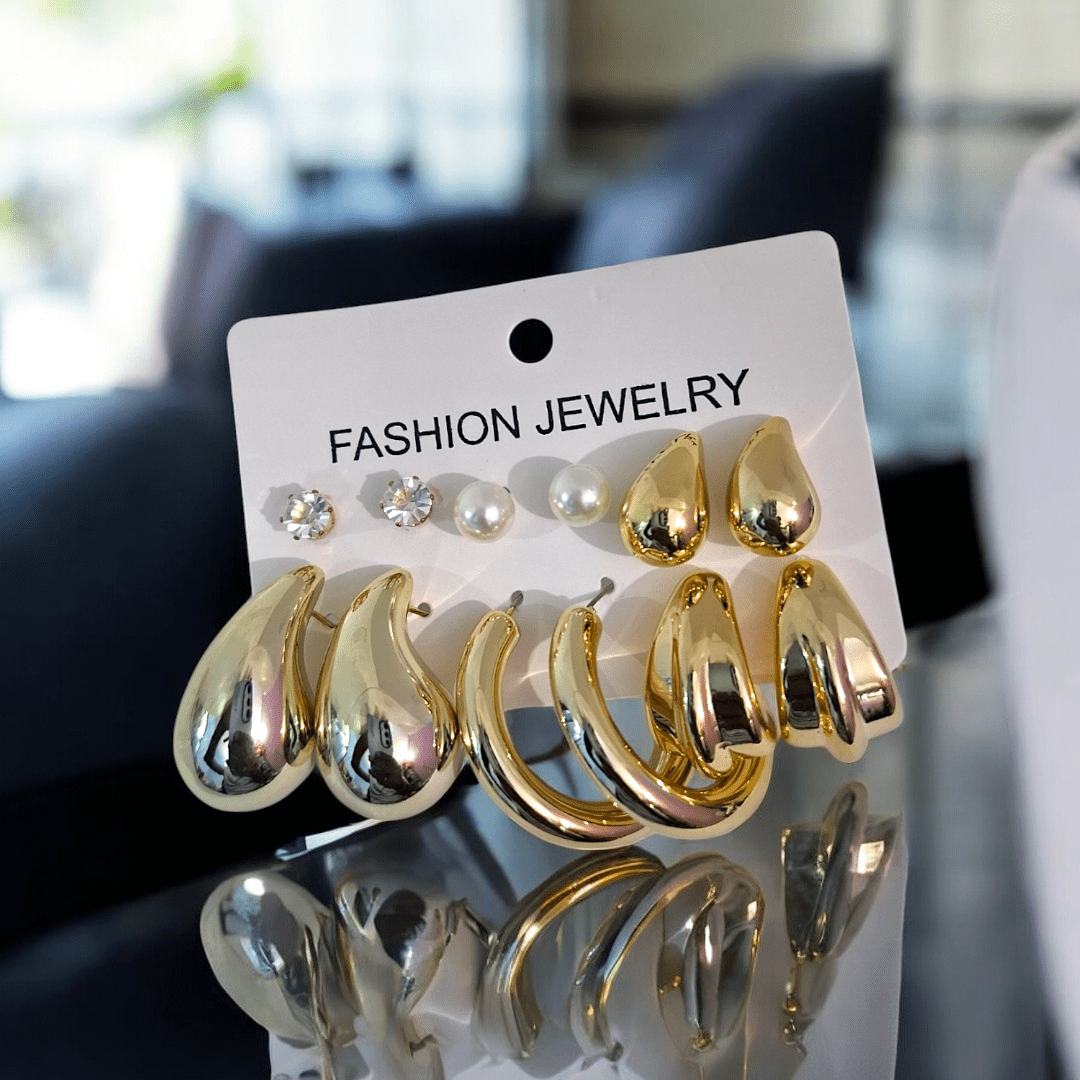 6-Piece Celebrity-Inspired Golden-Plated Hoop and Kaju Earrings Set with pearl stud for Women & Girls