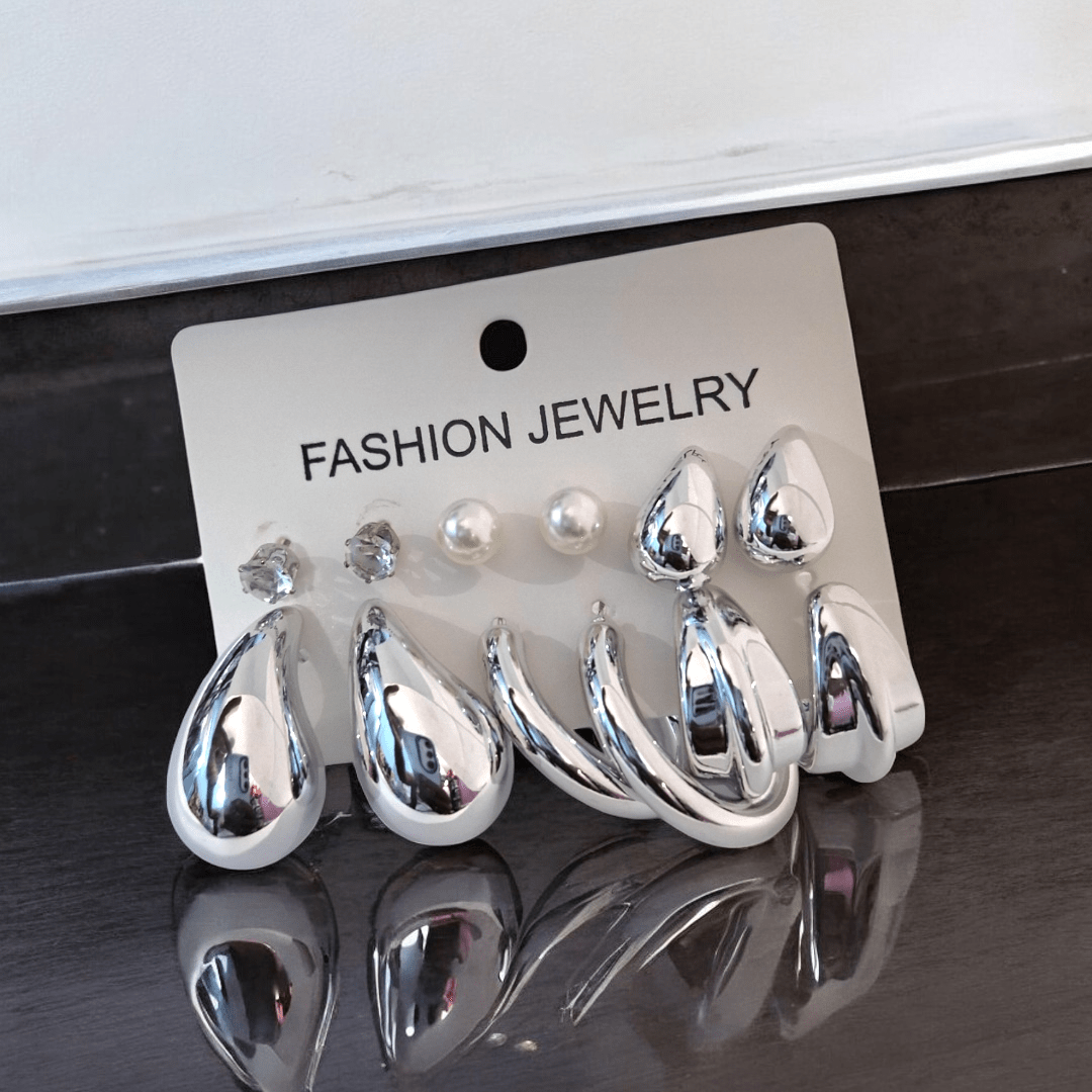 6-Piece Celebrity-Inspired Silver-Plated Hoop and Kaju Earrings Set with pearl stud for Women & Girls