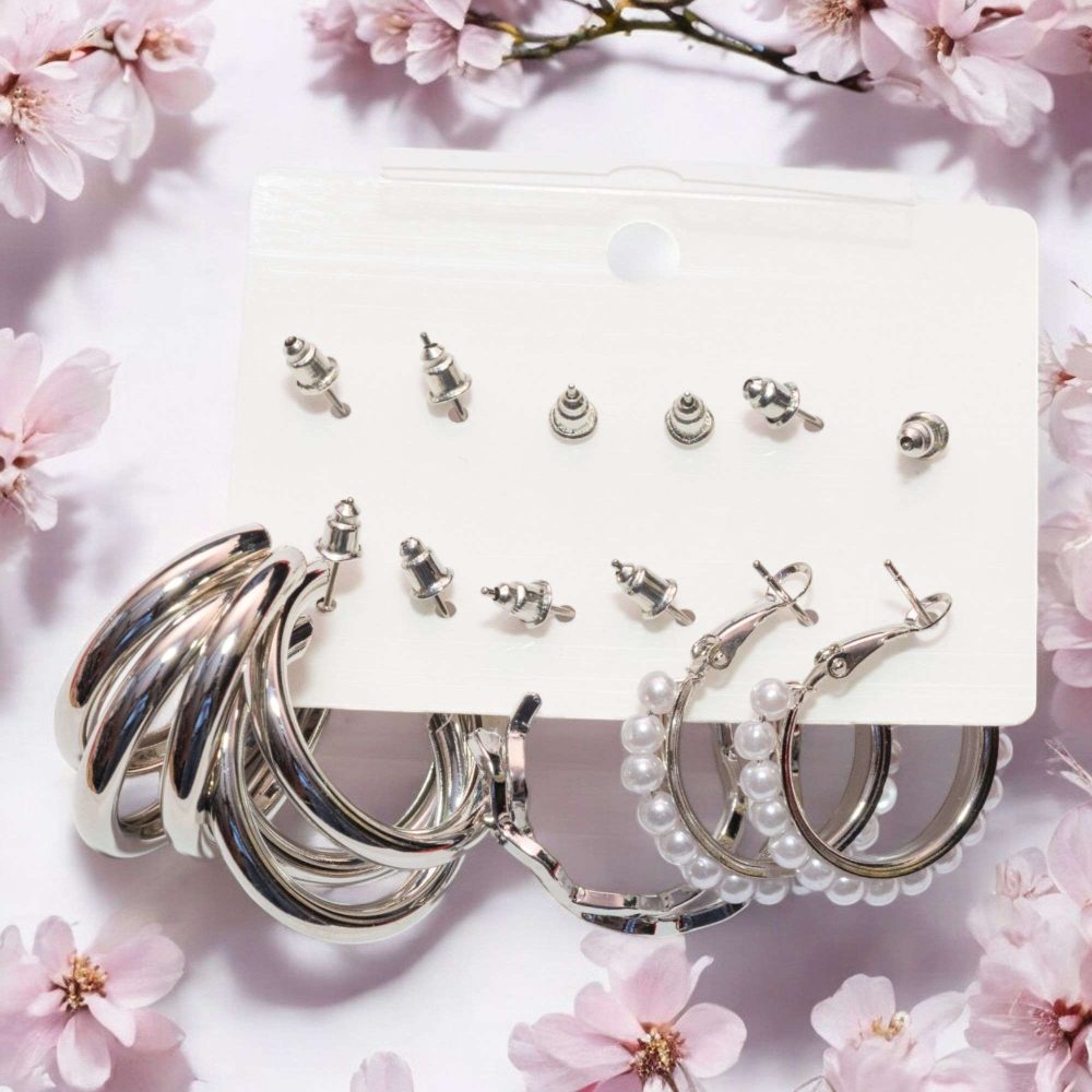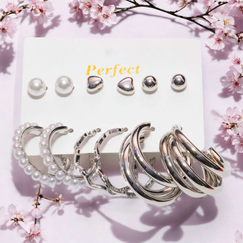 - 6 pairs combo of latest stylish design hoop and crystal pearl stud earrings