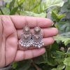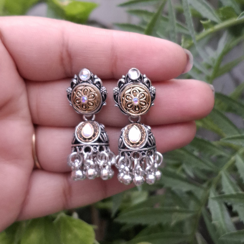 Add charm to your look with these silver and gold dual-tone oxidized jhumki earrings. Featuring a lightweight ethnic dome design, perfect for festive and everyday wear. Shop now at Aadvik Collections!