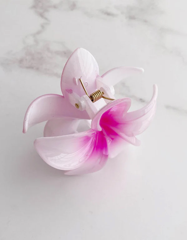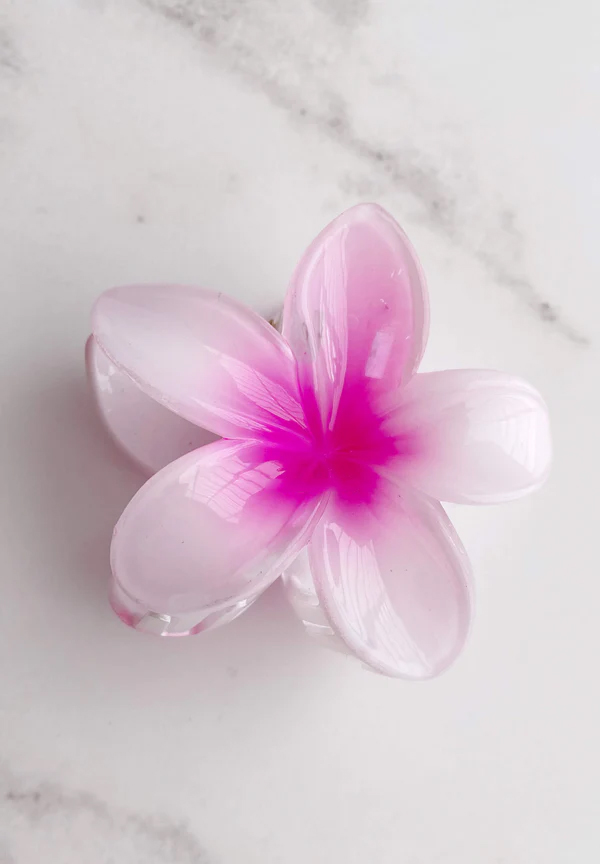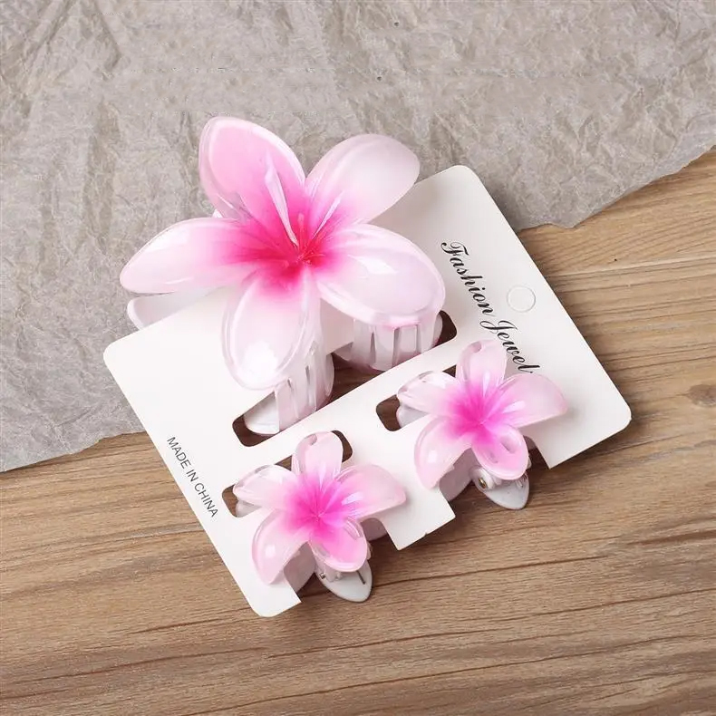 Hawaiian Plumeria Flower Hair Clips Gradient Color, Pack of 3, One Big and Two Small, Tropical Style for Summer Beach Parties