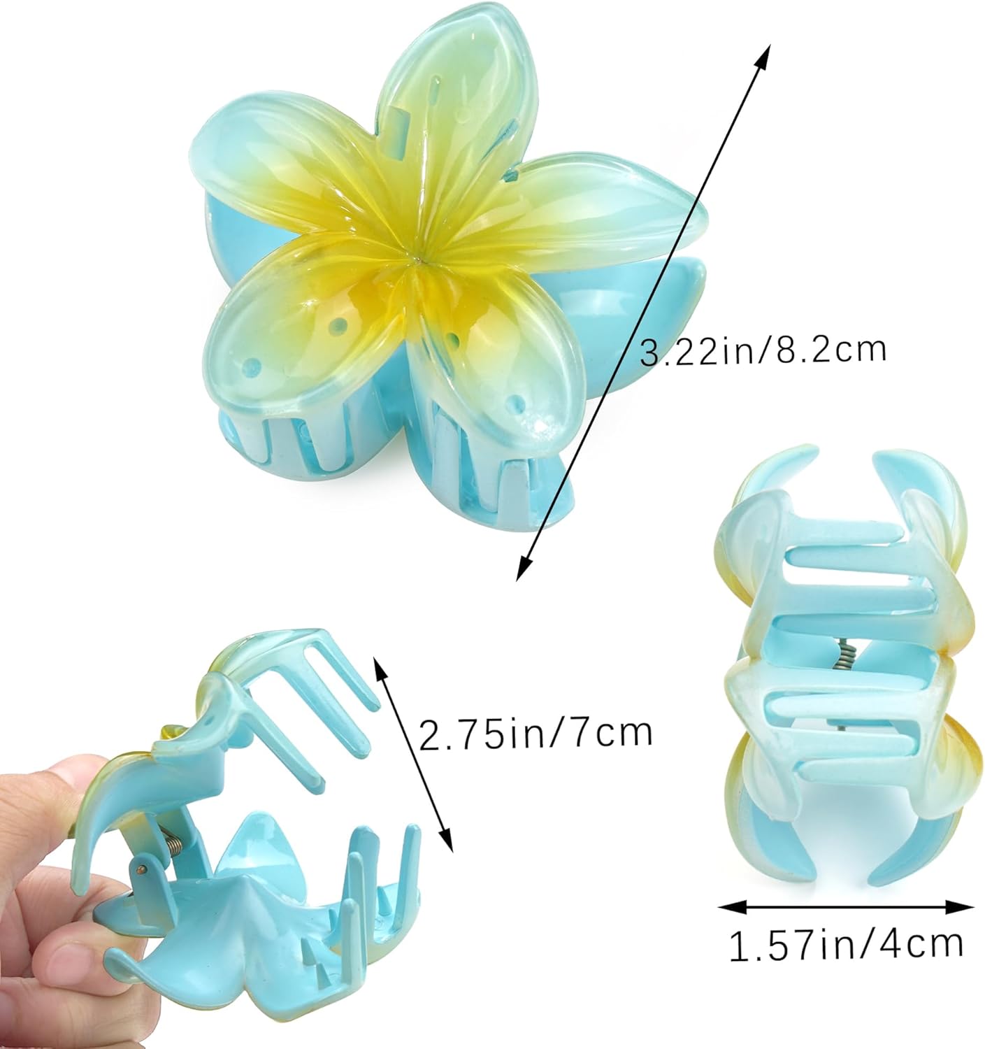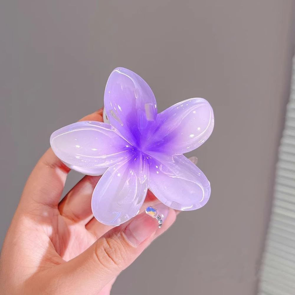 Enhance your hairstyle with this set of 3 flower-shaped hair claw clips featuring a beautiful pastel plumeria design. Crafted from high-quality acrylic, these clips provide a secure grip without tugging or damaging your hair. Their soft, glossy finish adds a charming and elegant touch to any look. Perfect for daily wear, parties, or holidays, these floral claw clips are a must-have accessory for women and girls who love a delicate yet trendy style.